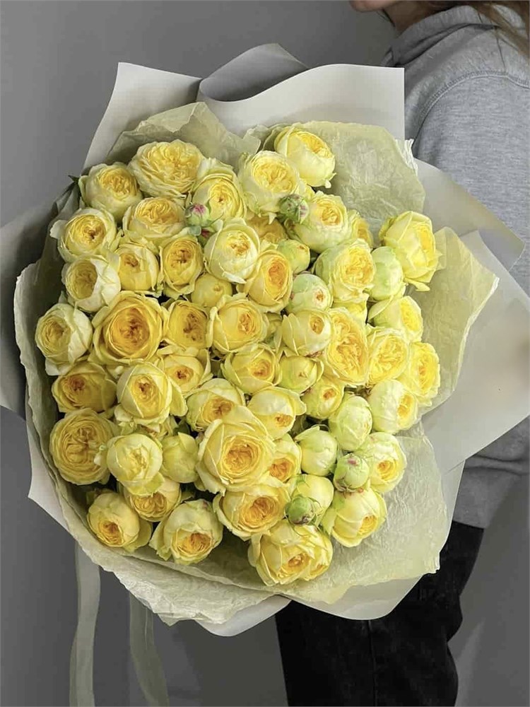 Кустовые розы Еллоу Баблз в пленке (31шт)