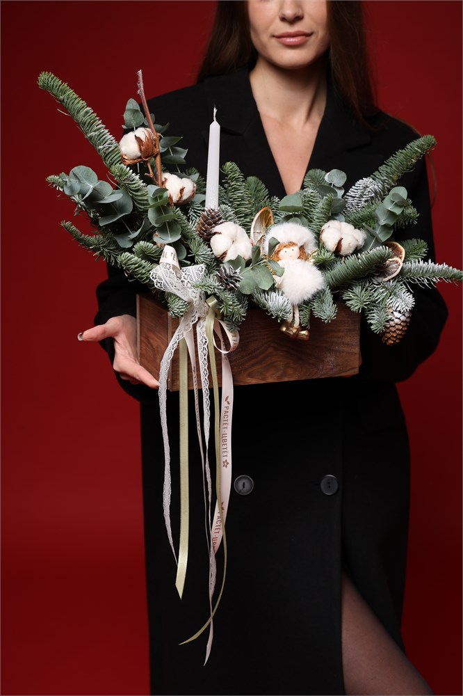 Зимняя композиция в ящике "Ангел" (Размер М)