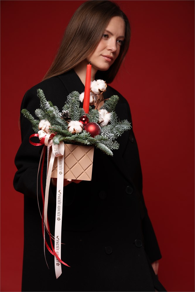 Зимняя композиция в ящике "Зимний уют" (Размер S)
